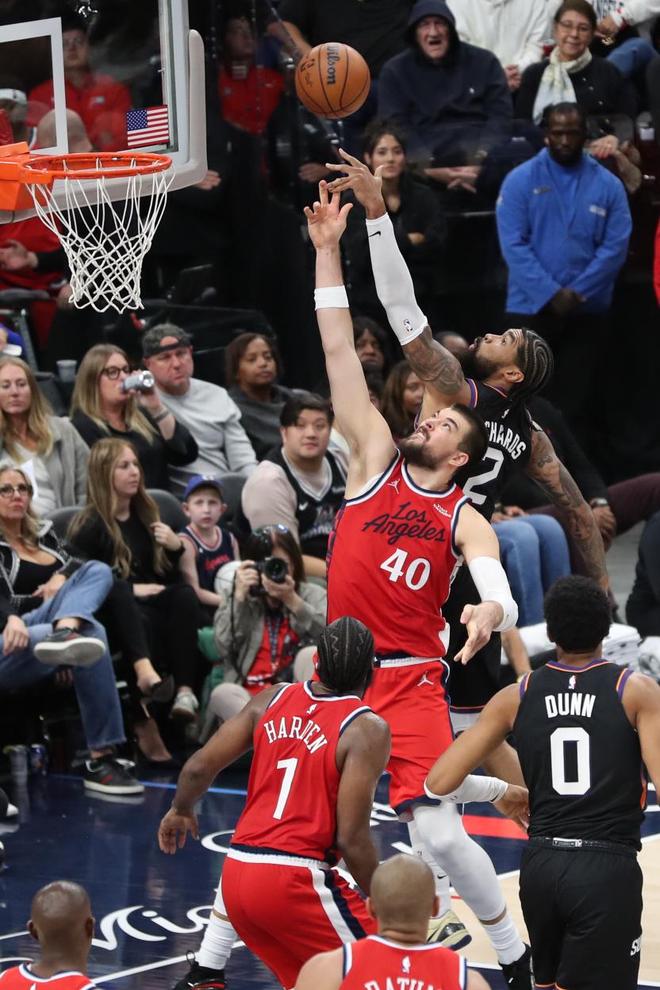 太阳队的布克上半场得到13分和7次助攻,吉莱斯皮得到12分;快船队的祖巴茨和科林斯各得到9分。